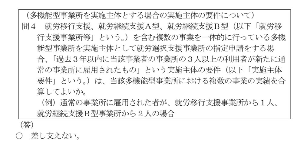 →良い。多機能型事業所であることがポイント。次のQ&Aと比較して見てほしい内容。